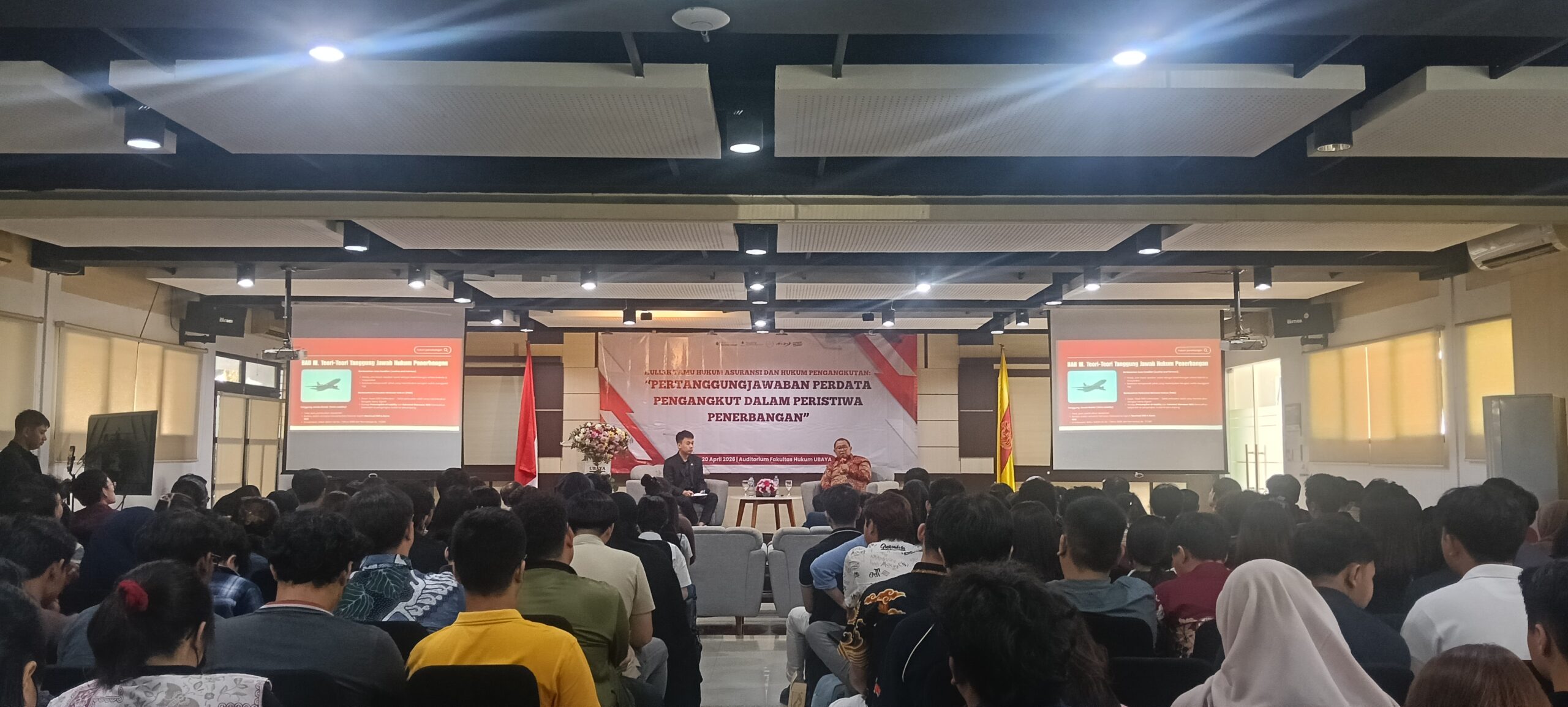 Bertempat di Ruang Auditoriun Fakultas Hukum Universitas Surabaya (Ubaya) pertemuan ini mengungkap tuntas bagaimana hak para penumpang pesawat dalam hukum keperdataan.