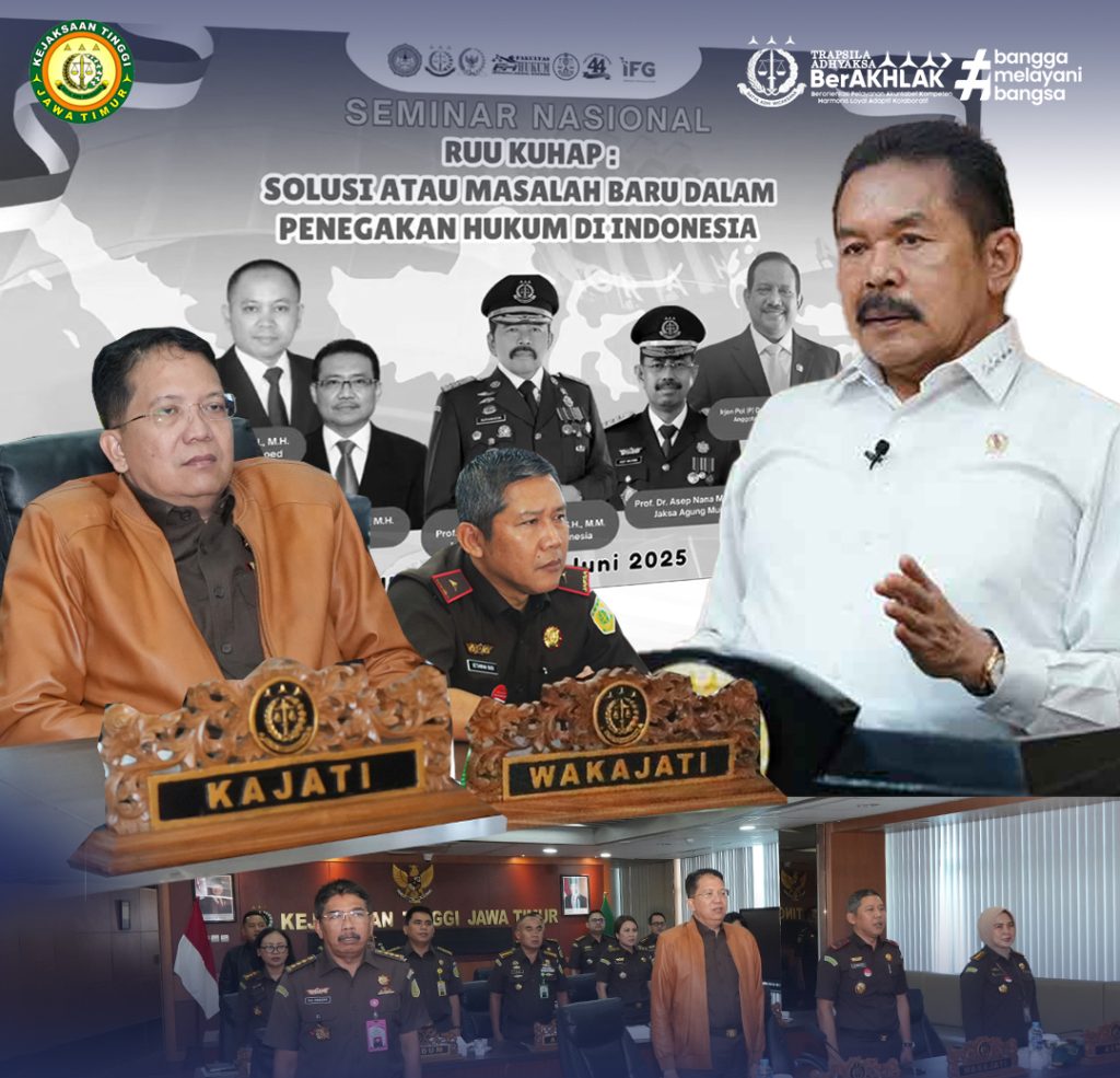 Kajati Jatim Prof (HCUA) Dr. Mia Amiati, SH, MH, CMA (tengah)