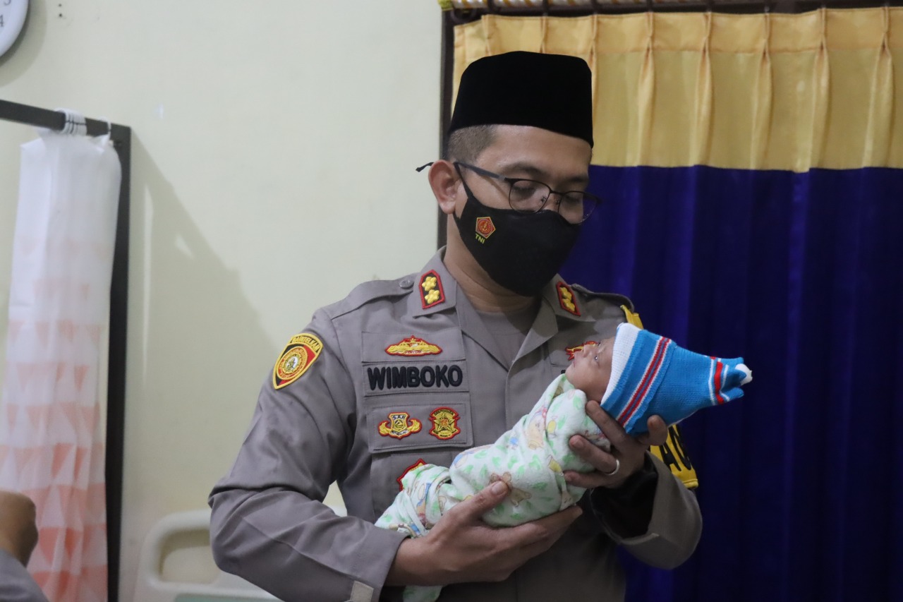 Bersama anggotanya, Kapolres Bondowoso menyambangi bayi yang kini tengah dirawat setelah ditemukan masih dengan ari-arinya di Desa Poncogati, RT 9 RW 02, Kecamatan Curahdami,Rabu (2/3/2022).