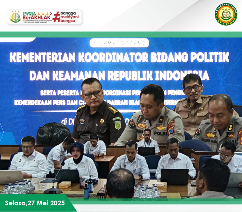 Rapat tersebut dihadiri oleh perwakilan dari Kementerian Koordinator Bidang Politik, Hukum, dan Keamanan (Kemenko Polhukam) RI dan dari unsur Kepolisian, Kejaksaan, serta Dinas Kominfo Provinsi Jawa Timur sendiri. Dari Kejaksaan turut hadir Bapak Komang Rai Warmawan, SH., M.Hum. Jaksa Fungsional pada Bidang Intelijen.