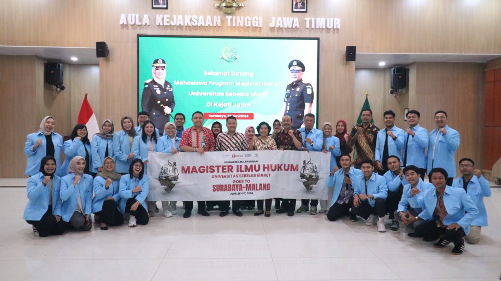 Surabaya– Dalam rangka pelaksanaan program Kuliah Kerja Lapangan (KKL) Semester Genap Tahun 2023/2024, Pasca Sarjana Magister Ilmu Hukum Fakultas Hukum Universitas Sebelas Maret (UNS) Surakarta mengadakan kunjungan ke Kejaksaan Tinggi Jawa Timur (Kejati Jatim) pada hari Jumat (26/6/2024).