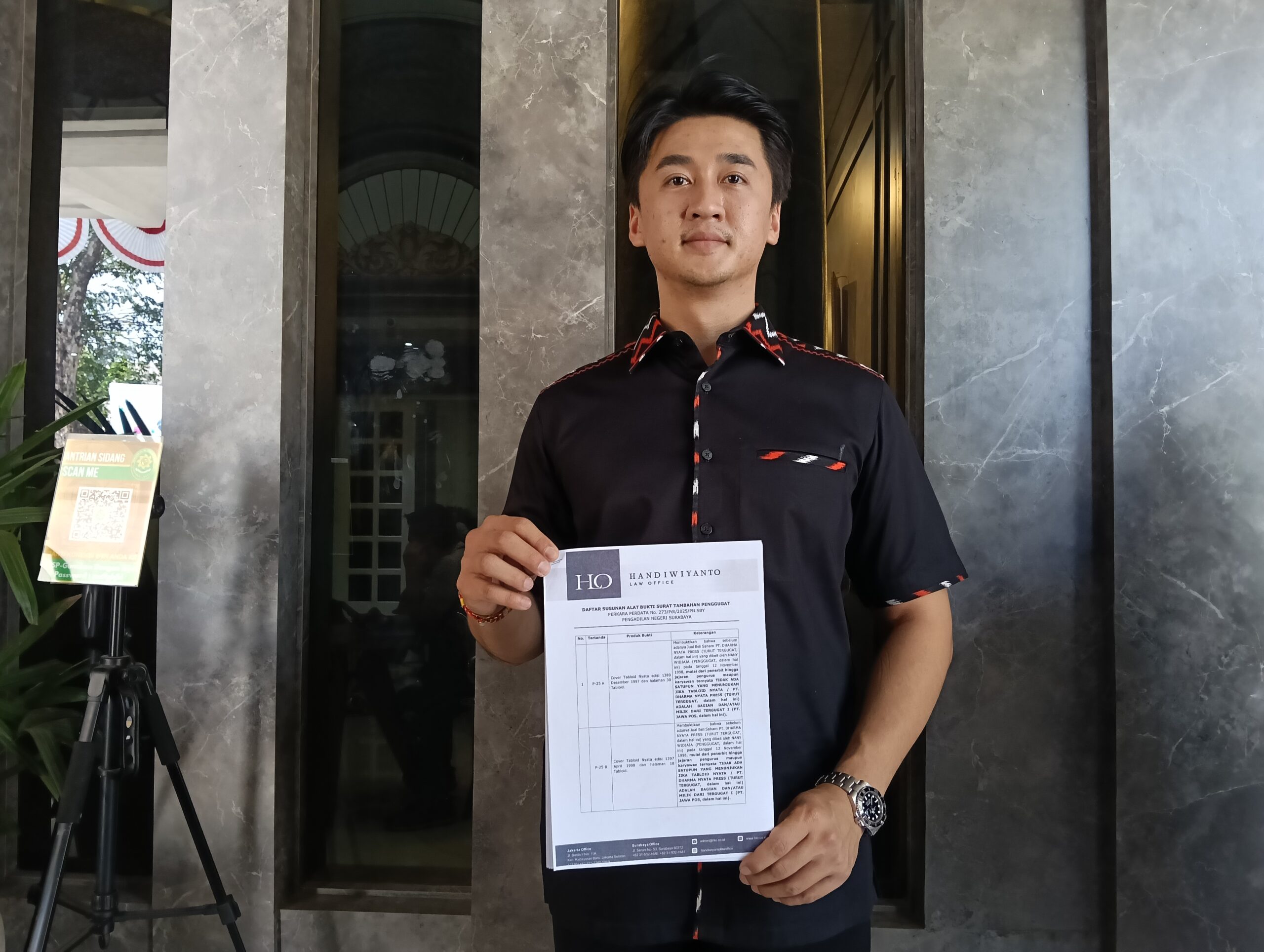 foto : Richard Handiwiyanto Kuasa Hukum Nany Widjaja Usai Menyerahkan Bukti Tambahan Kepemilikan PT Dharma Nyata Press