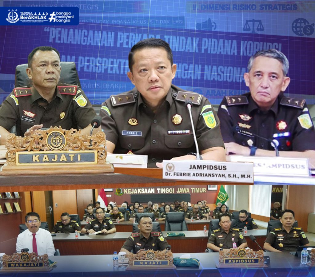 Surabaya — Kejaksaan Tinggi Jawa Timur menerima kunjungan Inspektur II pada Jaksa Agung Muda Pengawasan (JAM-Was) Hendrizal Husin, S.H., M.H., didampingi Inspektur Keuangan II Agus Salim, S.H., M.H., beserta tim, dalam rangka pelaksanaan Inspeksi Umum dan Inspeksi Khusus, Senin (9/2/2026).